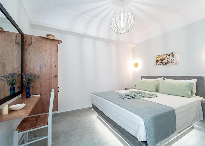 Ett utrustat pentry med brödrost och ugn passar perfekt för matlagning. Flygplatsen Santorini (Thira) kan också enkelt nås inom 15 minuters bilresa.